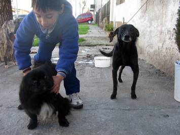 “En el Barrio Villa Jardín, en San Fernando, no es raro que un perro pertenezca a tantos dueños como casas hay en el barrio. A veces, la calle es la casa principal y el resto de las casas se vuelven sucursales temporarias donde repararse del frío o la lluvia y ofrecer el lomo a la caricia reconfortante. La tarde del 31 de Agosto se nos brindó fresca y soleada. La primavera se atrevía a mostrar sus brotes color verde-nuevo en la huerta de Zona Imaginaria, la casa en Villa Jardín que Lucrecia Urbano inventó para albergar y estimular la imaginación de los pequeños artistas vecinos y de los artistas que vienen de países lejanos. Decía que la tarde estaba espléndida cuando decidimos salir con una pandilla de chicos del taller de arte a recorrer las calles del barrio. La timidez que tuvieron al principio los chicos frente a la cámara al hablar de sus mascotas se disolvió velozmente en la cacería. Por todas partes asomaban perros de todo tipo de raza y morfología, nombrables e innombrables. Y si no aparecían los canes, nos trepábamos a las rejas o golpeábamos puertas para solicitar su presencia. Max, Oso, la gata Michi, Chispita, Negro, Daisy, el loro Pepo, la tortuga Tortuga, Pinky y otros tantos de los cuales fue imposible dilucidar el nombre desfilaron en un casting caótico y casual. He aquí el resultado de la excursión. Gracias a los chicos, a los vecinos y a Lucre por guiarme en esta insólita exploración.”